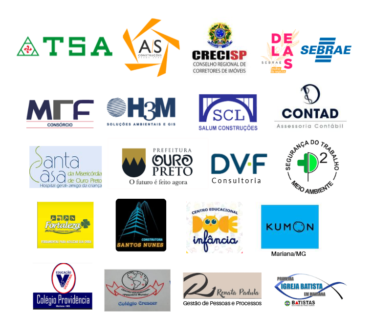 Santos Nunes Construtora, Salum Construções, Fortaleza Materiais de Construção e A/S Construções e Reformas (Mariana/MG).